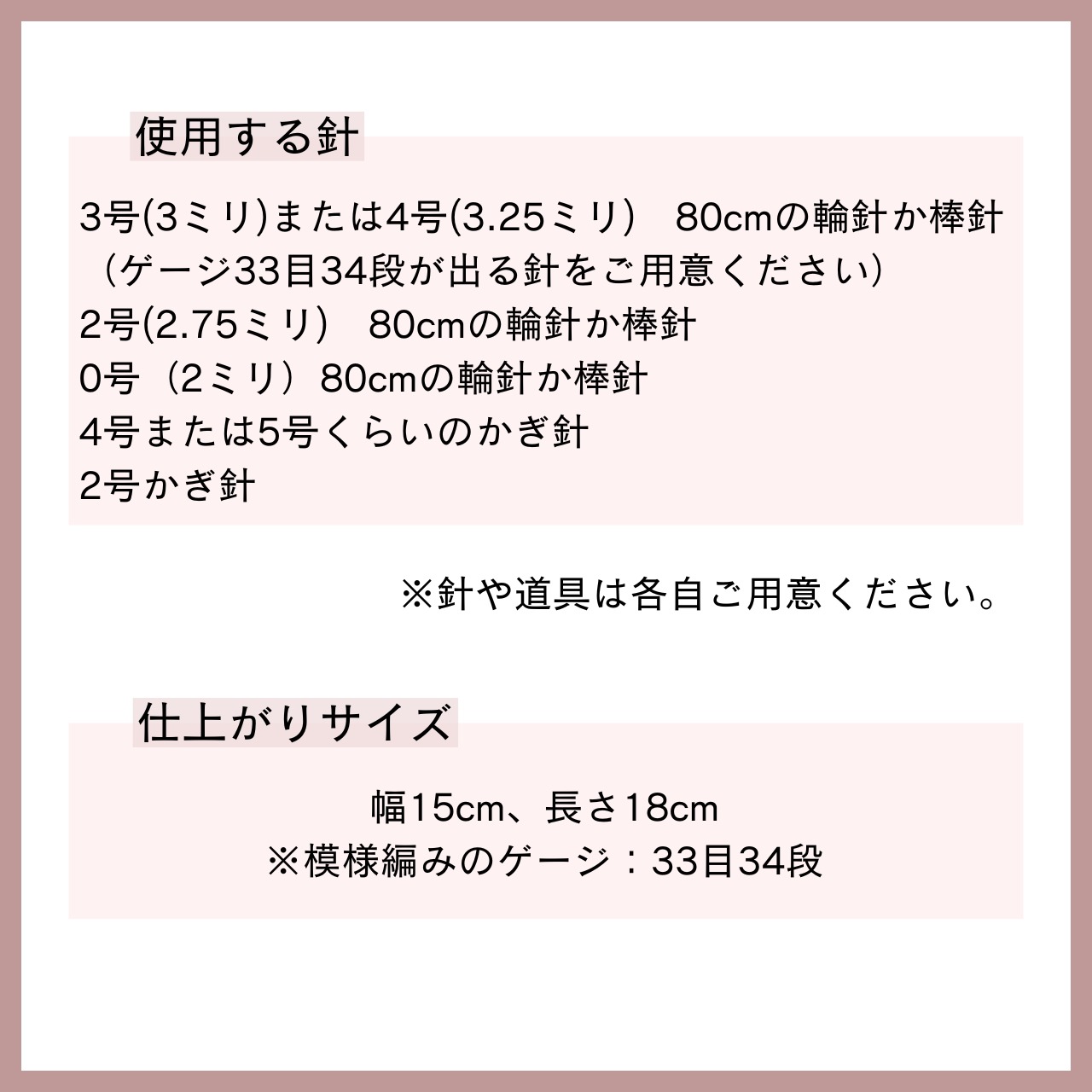 ※難易度としては、編み物の基礎が一通りできる方向けになります。
