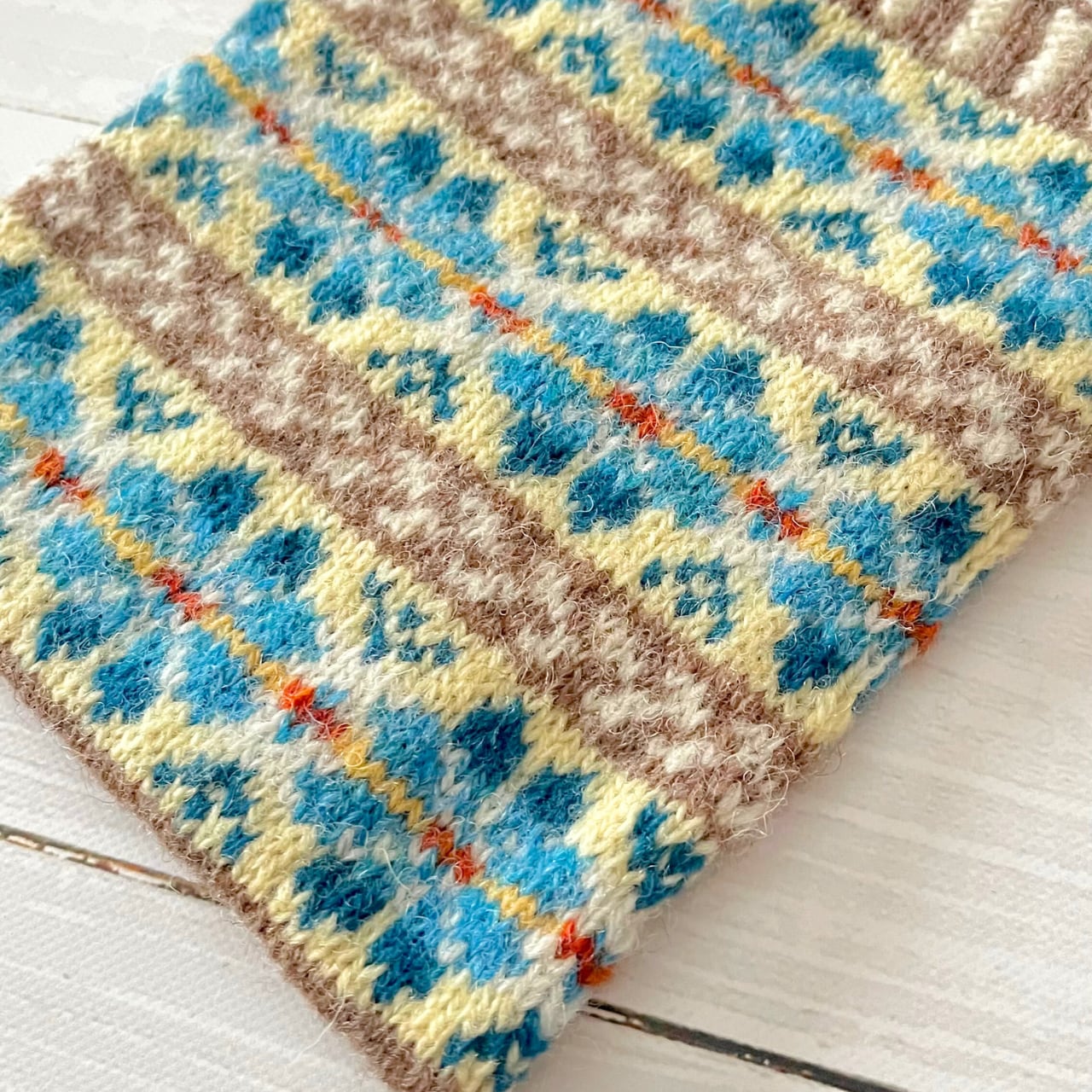 柄はお花と草木模様の繰り返しなので、フェアアイル初心者の方にも比較的編みやすい模様になっています。