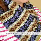 輪で編んでいるので、編み地に厚みがあり、首回りを寒さからしっかり守ってくれます。