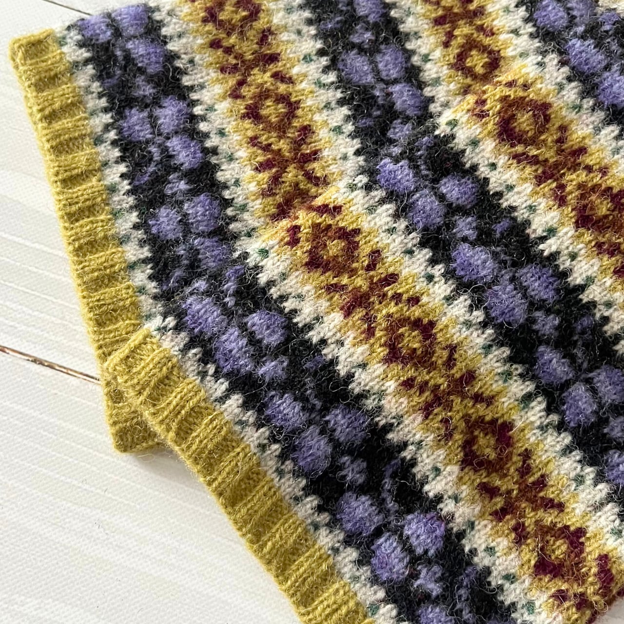 ※詳しい編み方の手順が分からない方は、私の出版本「はじめてのフェアアイルニット」をご購入ください。