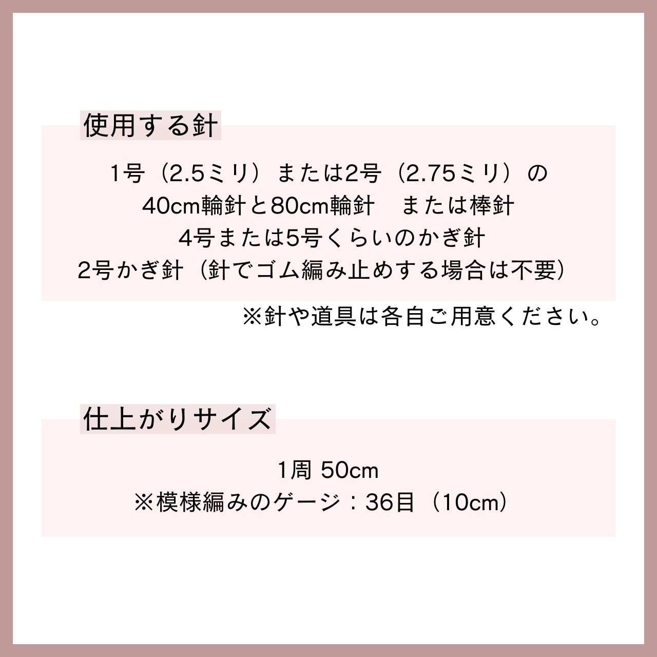 ※ゲージ 36目(10cm)で編んだ時の寸法です。