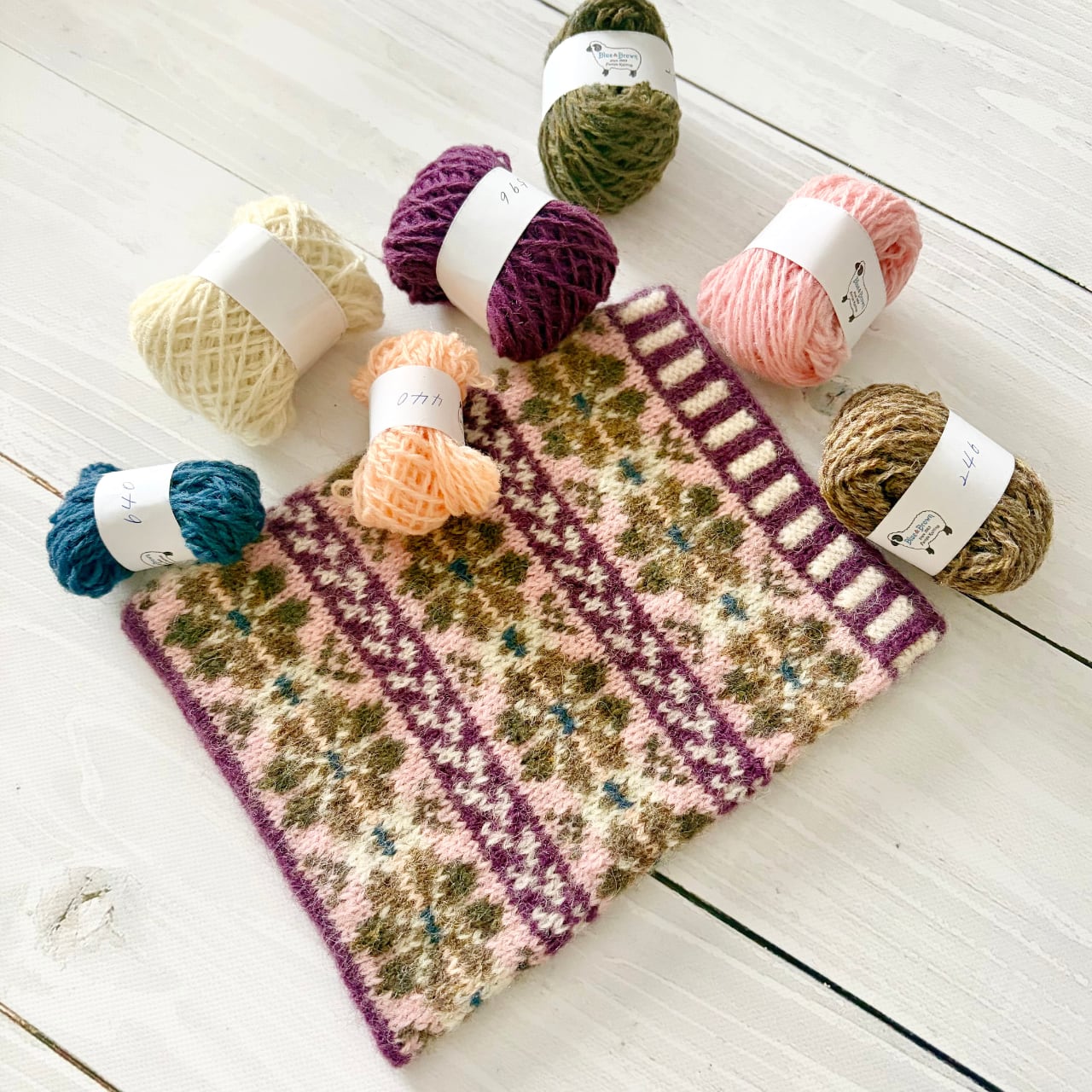 フェアアイルならではのかわいいお花模様はそのままに、ピンクを基調とした配色で、よりやわらかく、あたたかみのある印象に仕上げています。
